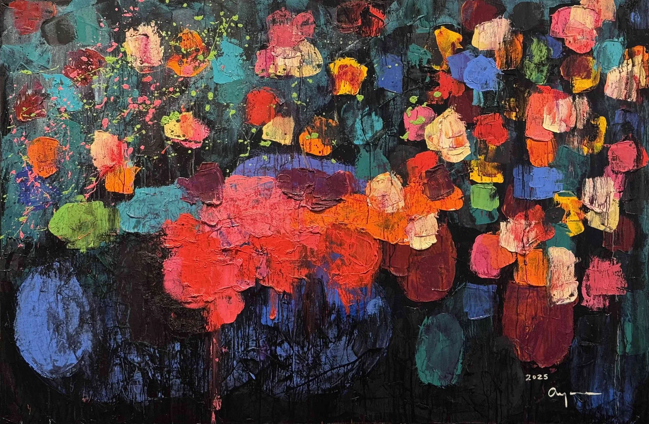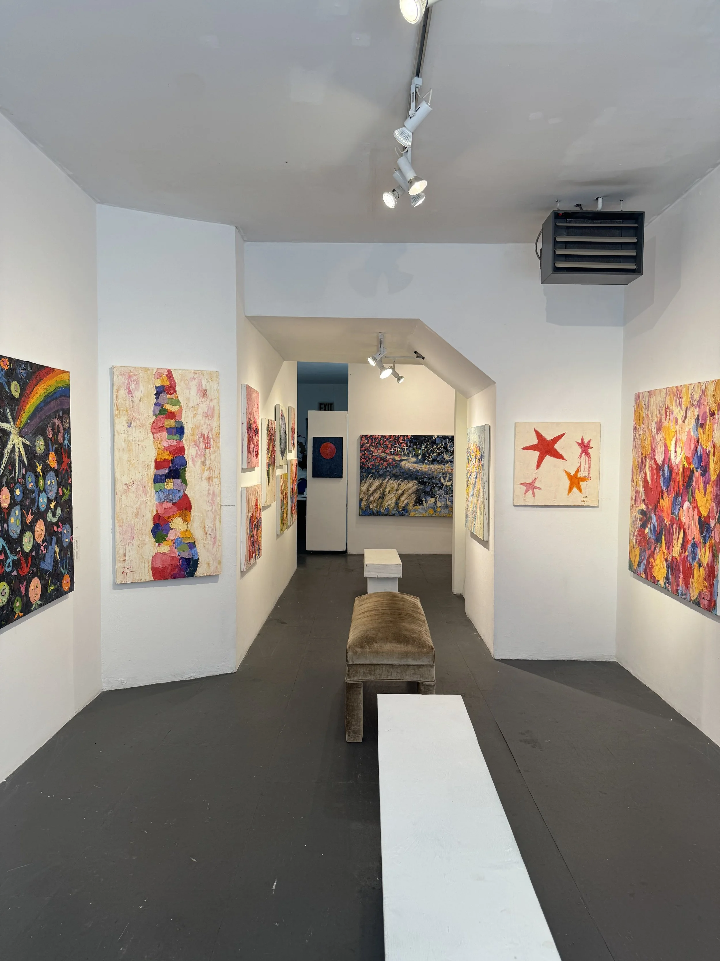 Originally from Japan and based in New York since 1990, Kurai is an abstract painter who studied in her youth under Saburo Murakami of the Gutai group. Utilizing oil on canvas, she employs bold colors and textured layers to reflect the emotion and humanity found in everyday life. In this exhibition, Kurai explores her personal journey with loved ones and animals she has lost, envisioning them as "stars" that remain within her heart.